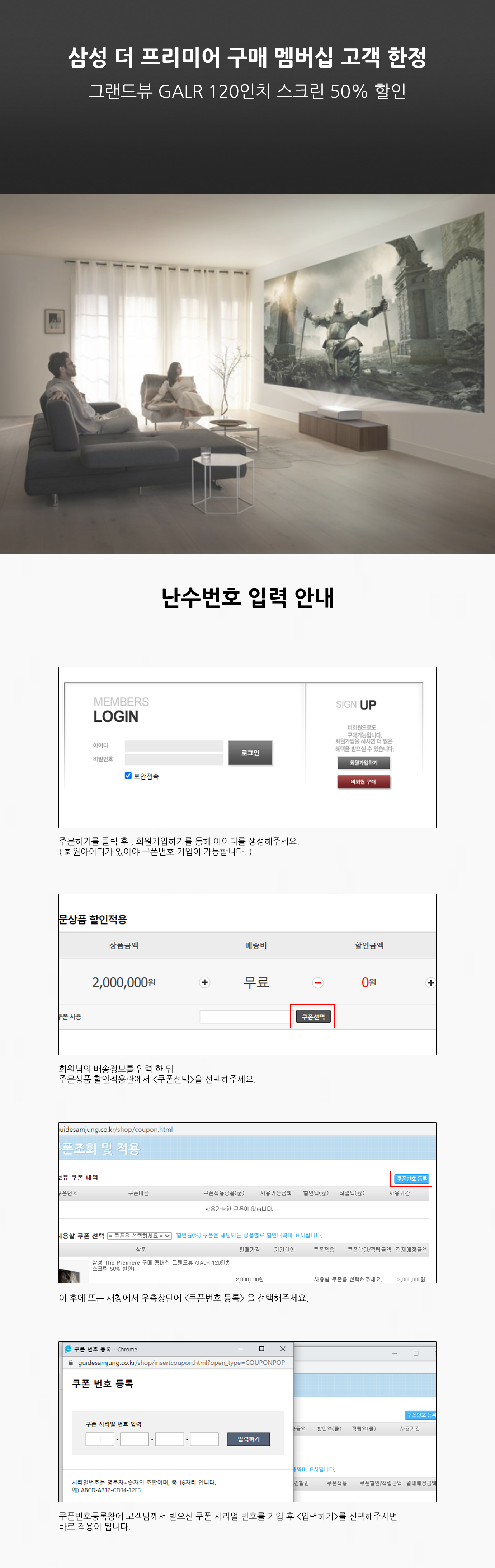 삼성 The Premiere 구매 멤버십 그랜드뷰 GALR 120인치 스크린 50% 할인!