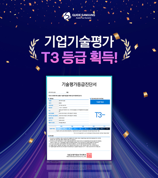 (주)가이드삼정은 최근 전문 기술평가기관으로부터 기술평가 T3 등급을 획득하며,
